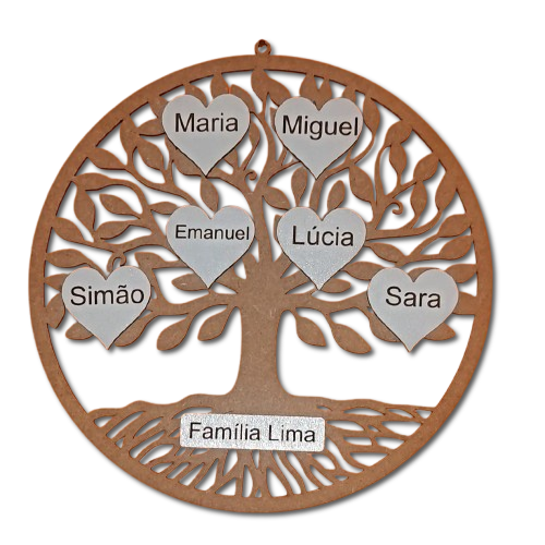 🌳 Adicione um toque especial à sua casa com esta árvore genealógica personalizada. Feita em MDF cru e branco, com detalhes delicados e um design moderno, é ideal para pendurar na parede e celebrar a união da sua família.