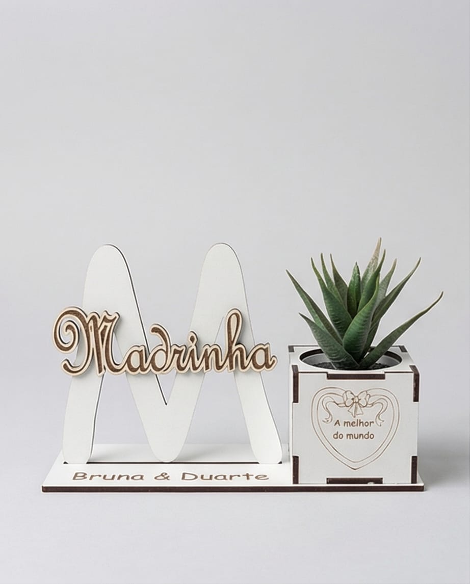 Surpreende a tua madrinha com uma lembrança única e especial! Este elegante suporte em MDF branco foi criado para homenagear quem sempre esteve presente nos momentos mais importantes.